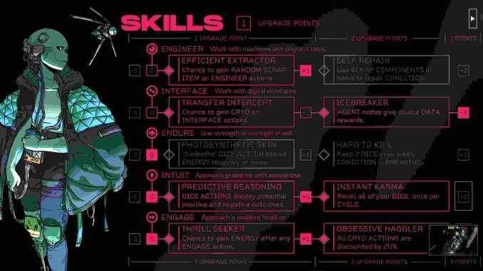 Citizen Sleeper membawa pemain ke Erlin’s Eye, sebuah stasiun luar angkasa kumuh yang menjadi rumah bagi buruh kontrak, pengungsi, dan korporasi bayangan. Anda berperan sebagai Sleeper, kesadaran manusia yang ditanamkan ke dalam tubuh sintetis milik perusahaan besar yang ingin menarik Anda kembali sebagai properti. Premis ini langsung menempatkan pemain dalam konflik eksistensial: apakah Anda sekadar aset, atau individu dengan kehendak bebas? Dunia game dibangun lewat narasi teks yang kuat dan atmosfer sunyi khas sci-fi distopia. Setiap sudut stasiun menyimpan cerita kecil tentang orang-orang yang berjuang bertahan hidup di tengah sistem ekonomi yang keras. Fokus permainan bukan pada aksi, melainkan pada keputusan sehari-hari untuk bertahan, membangun relasi, dan mencari kebebasan. Tekanan waktu dan kondisi tubuh sintetis yang terus menurun membuat setiap pilihan terasa mendesak dan bermakna.